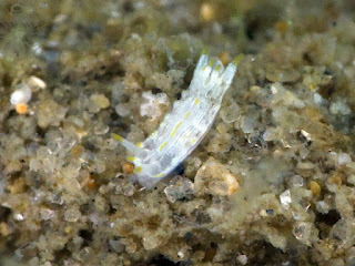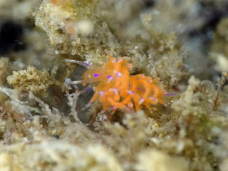 The rain is coming! Getting in while the water is nice. Near the end of the dive Janolus sp. 3 another NEW SPECIES! 2 large Sebadoris fragilis were found from under a rock at 140 mm. Magnificent!