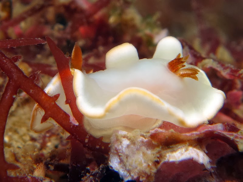 With the arrival of the last day of 2013 the temptation to find one last new slug for the year was too great. The weather actually improved during the day and with the water temperature hovering around the 26C mark we felt no cold at all. The dives were relaxing and fruitful but alas no newbies for our list. Upon surfacing after the second dive we rued not having a 3rd tank as it was just so comfortable and enjoyable down there finding things.