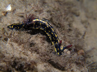 The species count wasn't anything to crow about but we still managed to find a new one to our list. Dermatobranchus sp. 6 is a little 10 mm orange nudibranch that exhibited unusual burrowing behaviour. It was very active and moved at a much faster pace than other species of Dermatobranchus we have observed.