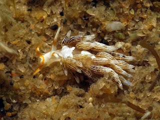 The sponges must be catching up with the hydroids in the river as we are starting to see more species of sponge eating dorids. A nice find was the new species: Trinchesia sp. 38 that at first glance bears some similarities to Trinchesia yamasui. The water temperature is on the way up - yippee.