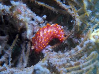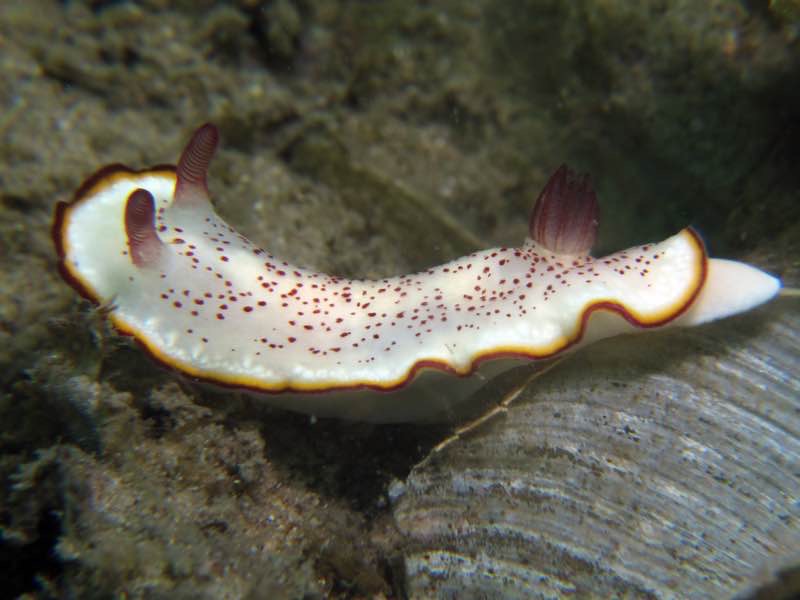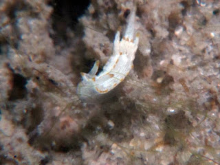 Nice afternoon shore dive. Goniobranchus daphne was out in force and the numbers of Nudibranchs was lower than usual. This must have something to do with being closer to the river mouth. Another new species was found under a rock, Thordisa albomacula with its long papillae.