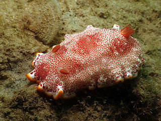 A morning dive from the steps further-most downstream in the park proper. A couple of not-so-common species sighted. The first sighting for sometime of Flabellina angelvaldesi. We are trying to decide if it is the last of its species here or the first of a possible revival. Time and further dives will tell.