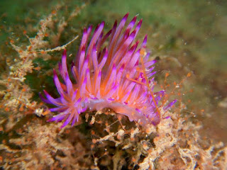 Dispite the rain and weather there was very little current on this dive and the water pretty clean. It was quite nice running into the large and numerous Flabellina rubrolineata. These animals were up to 60 mm