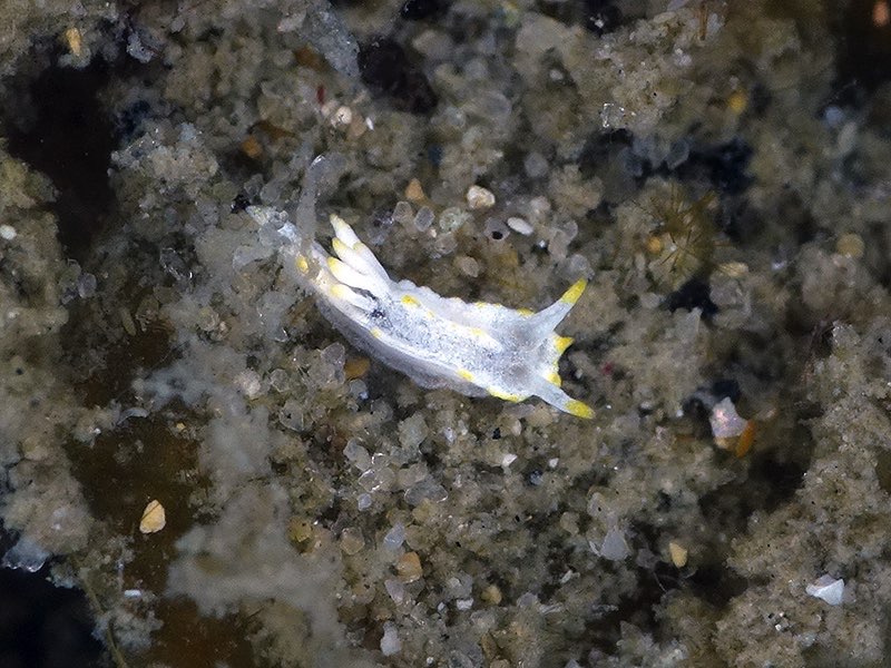 The river beckens again and I surrender. Gail joins me and we we search like bloodhounds. Finding a pair of Okenia liklik was a treat. Philinopsis speciosa, Tubulophilinopsis pilsbryi were great see as well. The highlight was fiding a Mnestia sp. 1 live animal with its yellow bits of colouration.