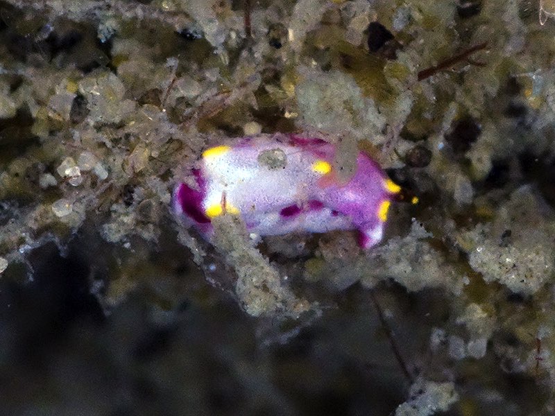 On this morning dive with a 1.9 m tide there were many Nudibranchs to be found. A Unidentia sp. 9 was found but the cerata look different from what we have found previously. A small Niparaya sp. 10 was a great find, again different from what we have found previously. And to top it off Haminoea sp. 14 was found but in situ it did not look like a slug, but when the photos were reviewed it is another new species due to the green spots in the body. Goniodoridella savignyi seems to be everywhere! For me the highlight was seeing an 11 mm Cerberilla sp. 3 as it moved quickly along the sand. Some great finds no doubt!