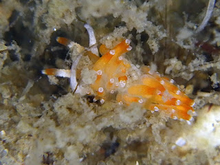 Friday diving and Sheryl need it! So off we go. There was a little reluctance before entering but that was all forgotten. This was a monumental dive. 70 species with 7 new species, where did that come from?? I'm telling you all the river is on fire. Gastropteron minutum was the big surprise for me today what a critter, all 3.5 mm of it. Four new and different Niparaya species where recorded today...WOW! That list is growing. The second Placida barackobamai was found today as well. A new Philinopsis was found today too, very unusual with its grey mottling and burnt orange markings. The new Costasiella sp. 7 was recorded today, 4 photos before the water swept it away. It has been a while since I have seen Favorinus tsuruganus, so that was a great find and a nice big size. Goniodoridella savignyi seemed to be on every rock!! Lastly seeing Julia exquisita again was a treat!