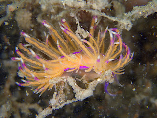 Rain all night and a southerly wind at the start but we had a great dive in-spite of it. Richie and Chris went the other way. After the dive we found out they recorded a white Elysia with dark rhinophores.... another new species! Seeing come-back-species like Tenellia sp. 49 and Lophodoris sp. 1 were wonderful. Eight more Thecacera pennigera were found today as well including a mating pair. The river is looking good...