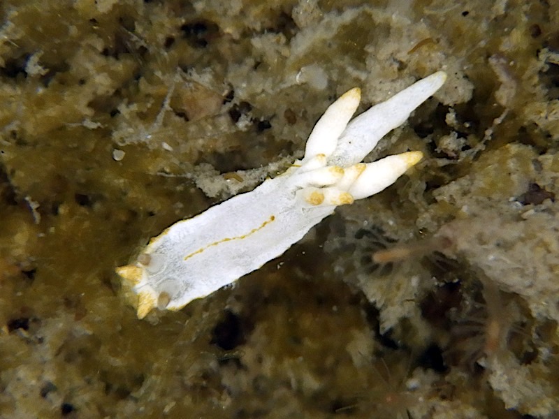 After a very hot 33 C day the overcast clouds were a joy. There were many Nudibranchs to be seen today!! Seeing Dermatobranchus oculus, Naisdoris labalsaensis, Murphydoris adusta, Philinopsis falciphallus and Phyllodesmium acanthorhinum were special. An Unknown heterobranch was recordes today and sent to Bob Burn, no idea we both thought but definately a heterobranch. Some large Goniodoridella geminae were seen today. Great dive.